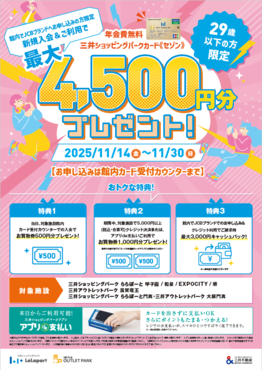 【관내 입회 한정】29세 이하의 분은 최대 4,500엔분 선물! 미쓰이 쇼핑 파크 카드 "세종"신규 가입 캠페인