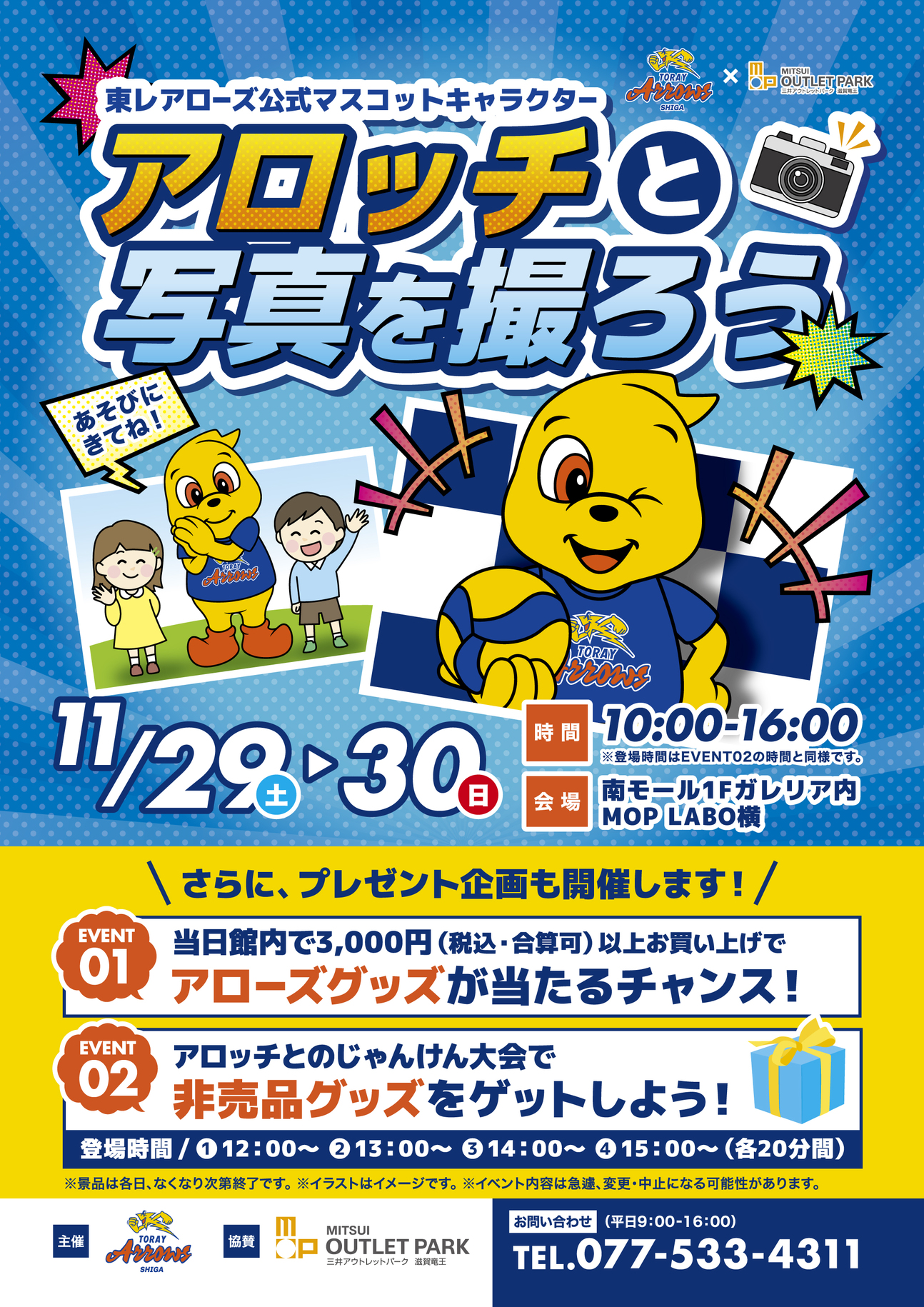 11月29(土)と11月30日(日)に、東レアローズ滋賀によるイベントを開催いたします!