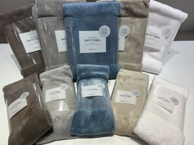 흡수성, 속건성이 뛰어난 촉감 발군의 마이크로 화이버 소재는 가벼움도 매력입니다.