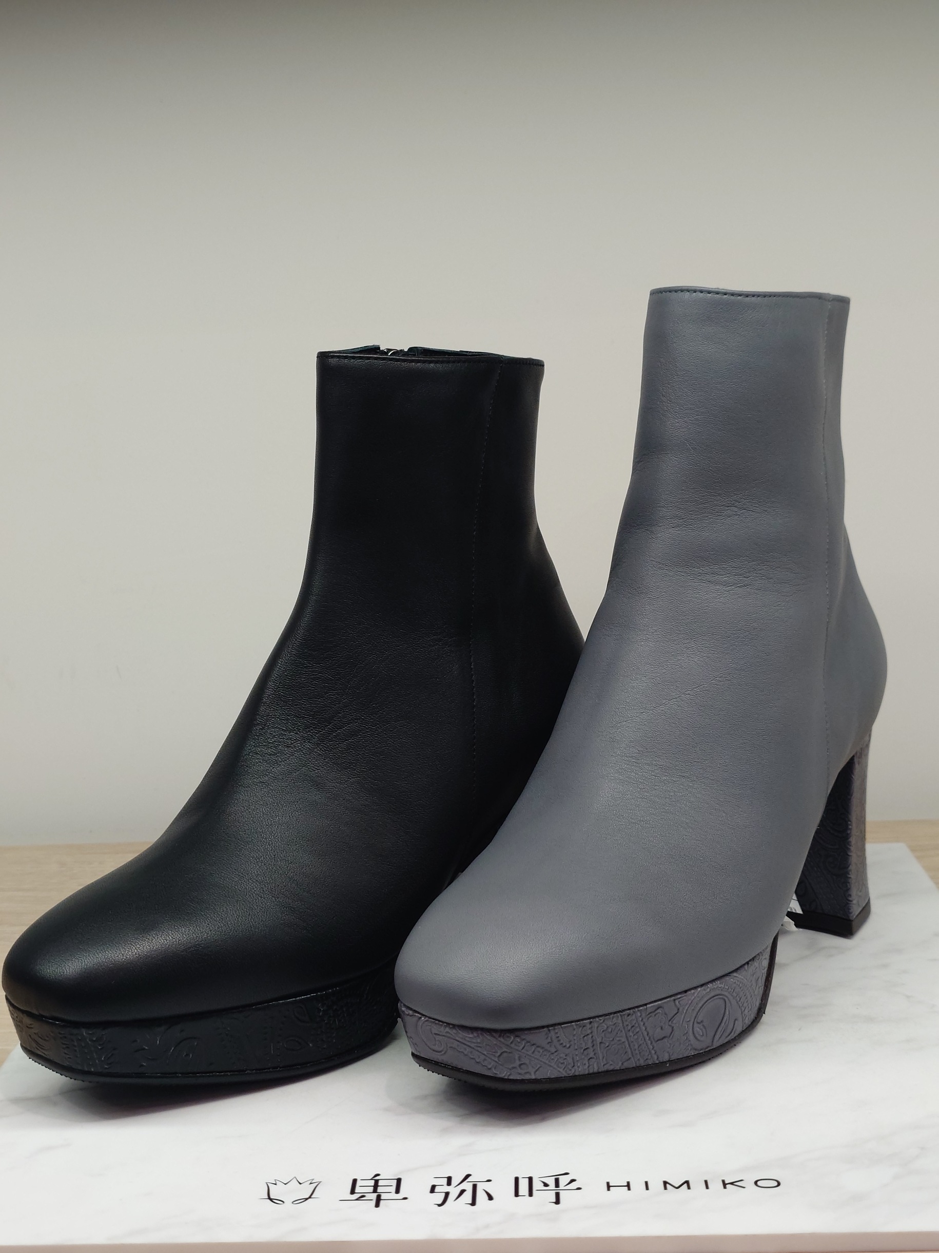 볼류미한 스톰과 옷자락이 플레어가 된 굵은 힐로 안정감을.
