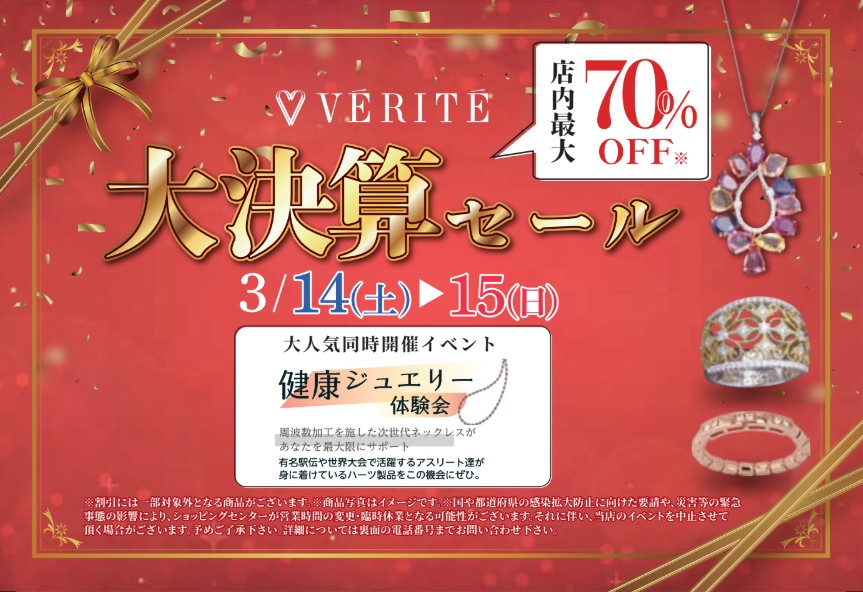 3/14(토)・15(일)의 2일간 한정으로,〖대결산 세일〗을 개최합니다! !