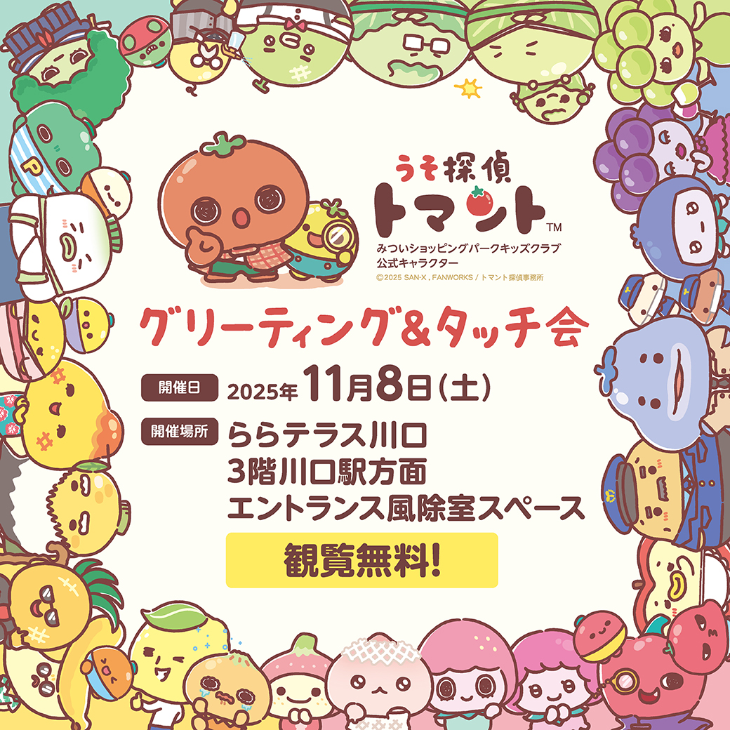미츠이 쇼핑 Kids 클럽 공식 캐릭터에 취임한, 「거짓말 탐정 토만토」의 인사말&터치회 이벤트를 개최!