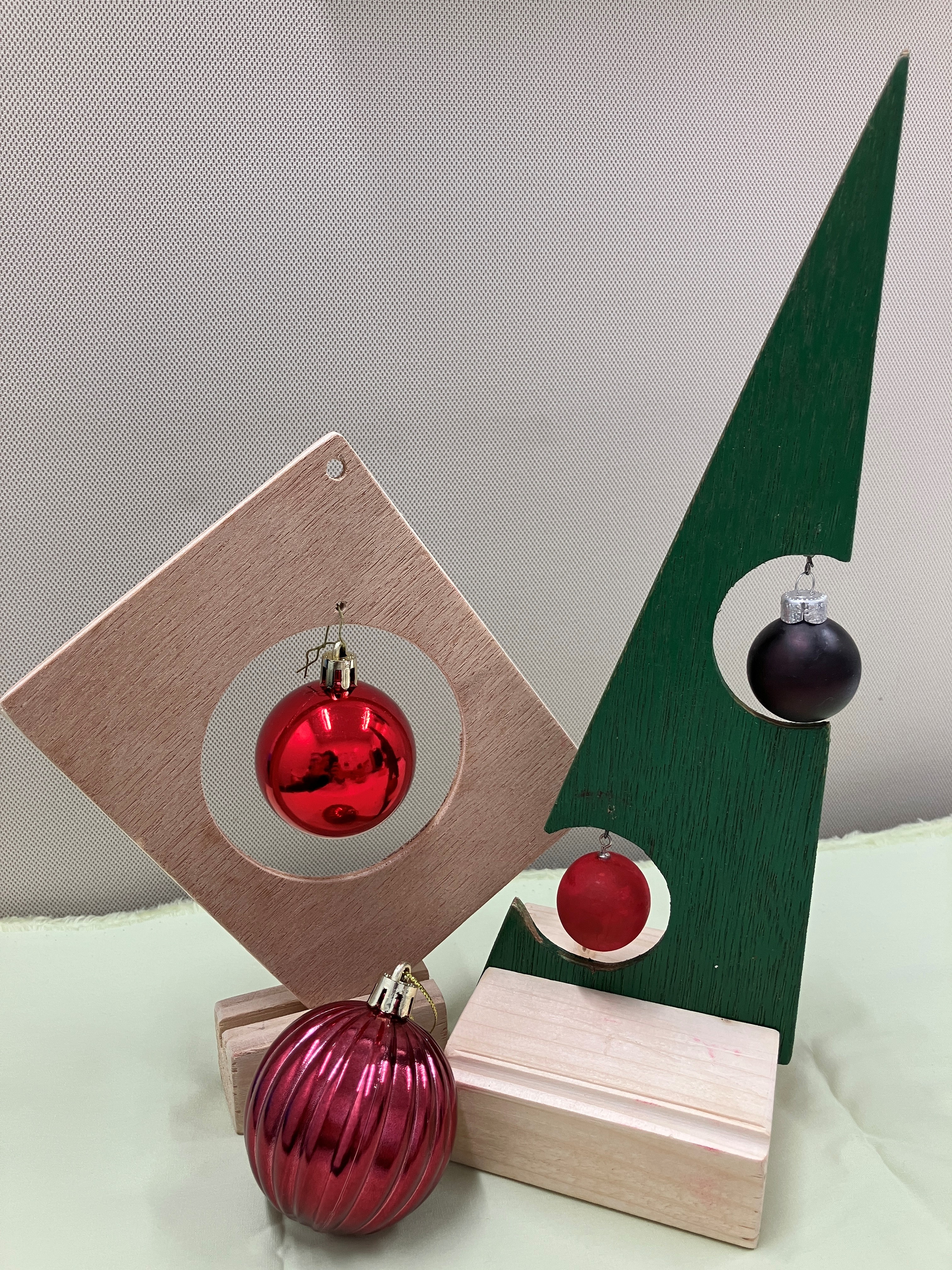 ・こたつに入ってもらい、こたつの上で、木製ツリーづくり