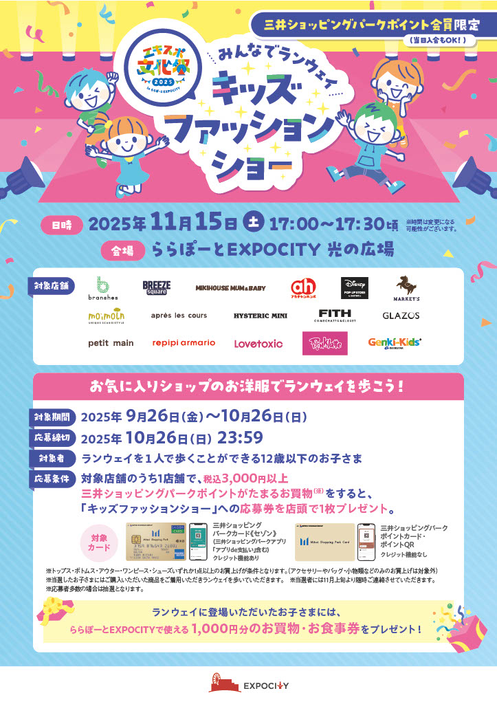 ※참가비는 미쓰이 쇼핑 파크 포인트 부여의 대상외입니다.