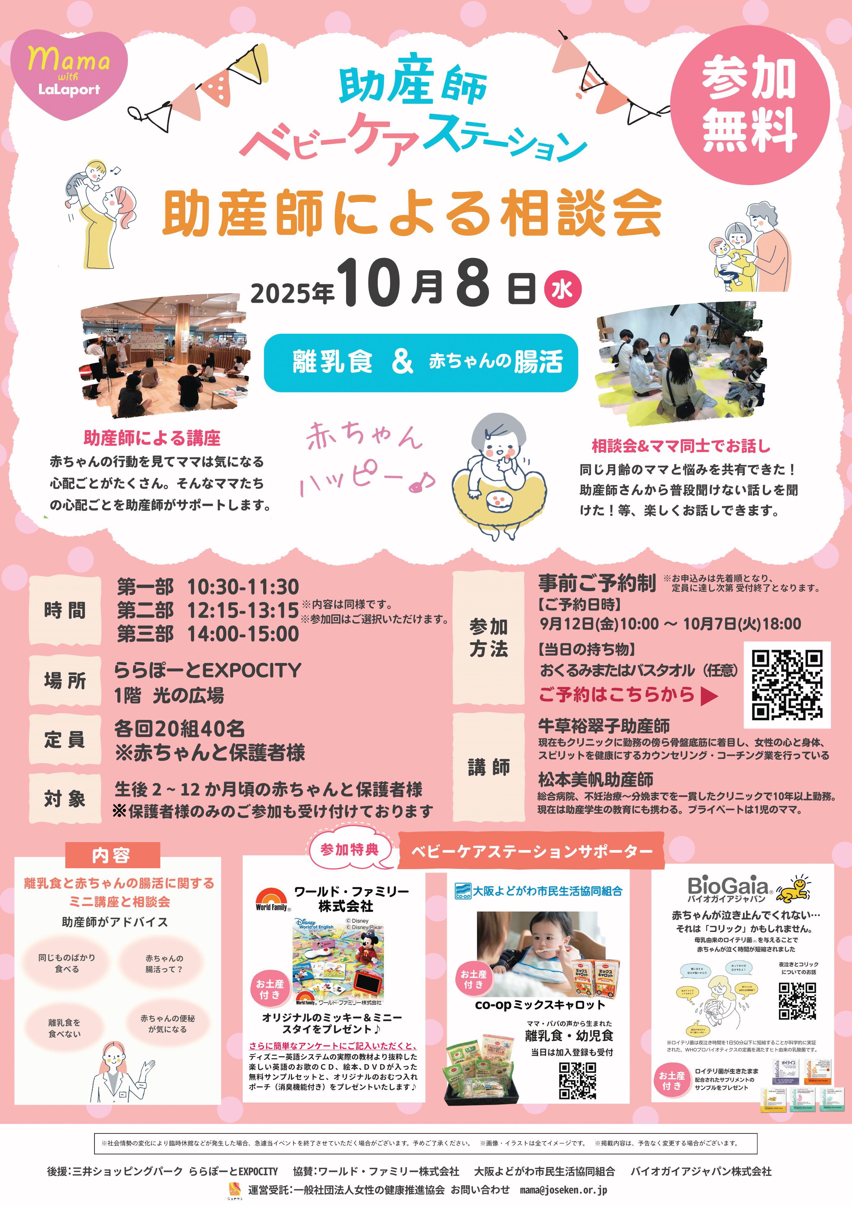 【10/8(수)】【참가자 모집】조산사 아기 케어 스테이션 조산사에 의한 상담회 아기 해피 이유식&아기의 장활편