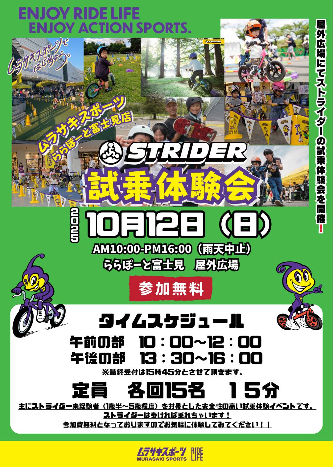 MURASAKI SPORTS LaLaport FUJIMI의 스트라이더 시승 체험회를 개최합니다!