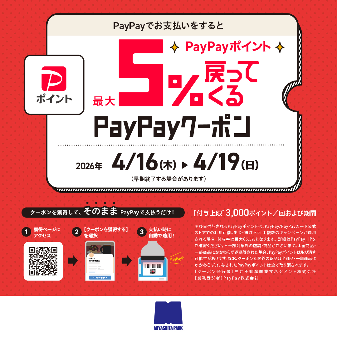 MIYASHITA PARK 대상 점포에서, 구입시에 이용 가능한 쿠폰을 준비!