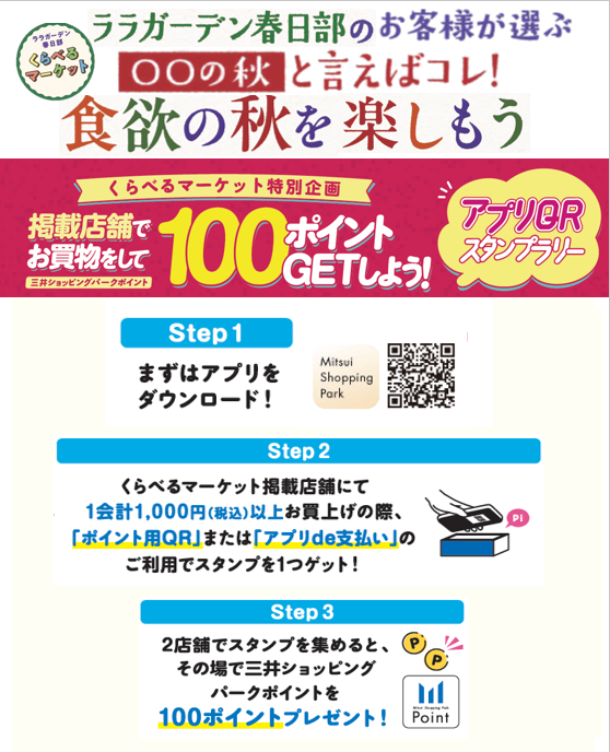 - くらべるマーケット「食欲の秋を楽しもう!」第2弾 アプリQRスタンプラリー♪