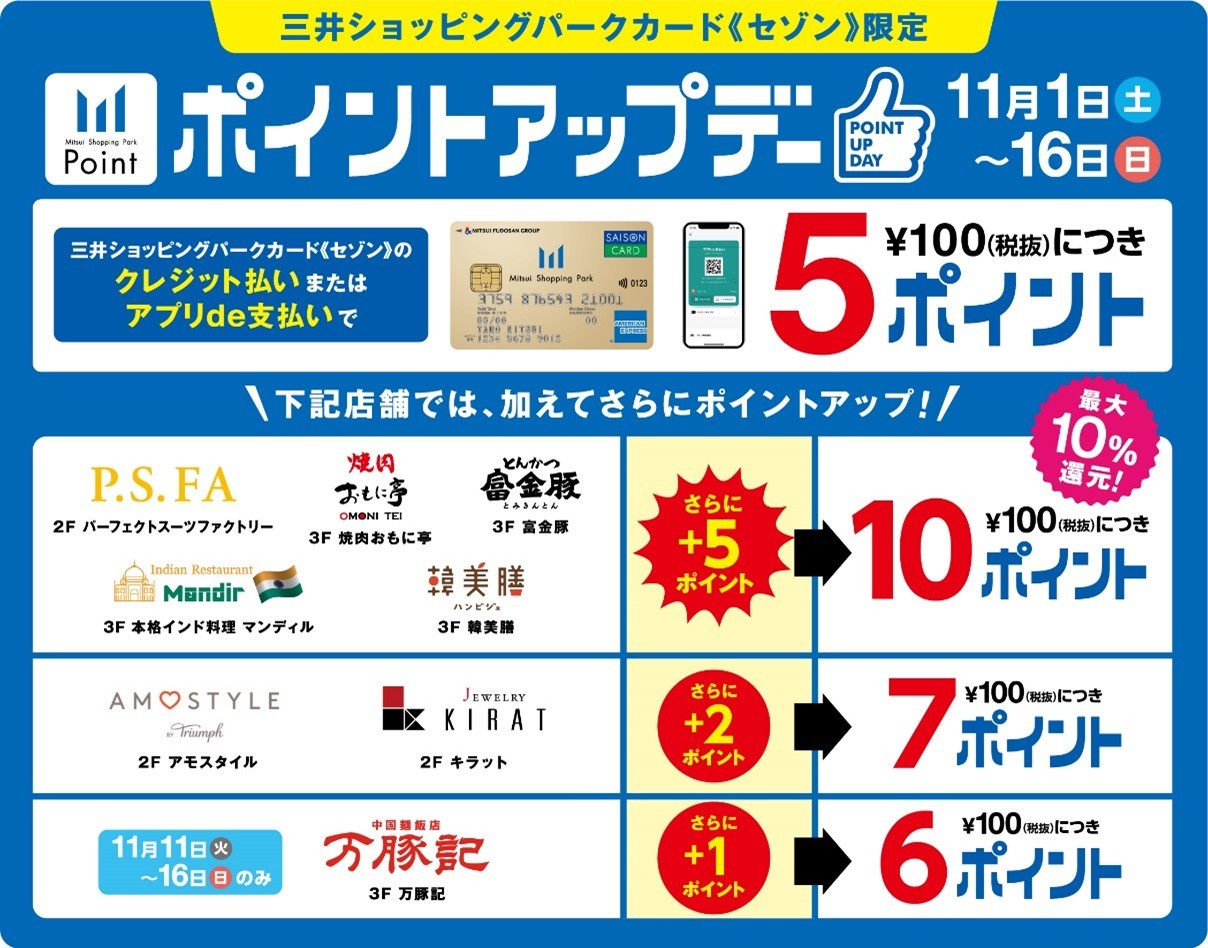 - 三井ショッピングパークポイント《セゾン》限定 ポイントアップデー