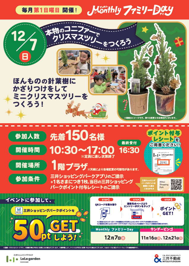 参加条件:当日の三井ショッピングパークポイント付与レシートのご提示+三井ショッピングパークアプリのご提示