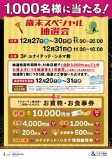 さらに、歳末市期間中に対象店舗で1会計3,000円ごとのお買上につき、「歳末スペシャル抽選会」の抽選券を1枚配布いたします!