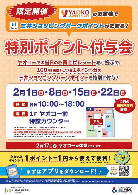 【ララガーデン春日部】ヤオコーレシート対象特別ポイント付与会 入会確認用(2月)