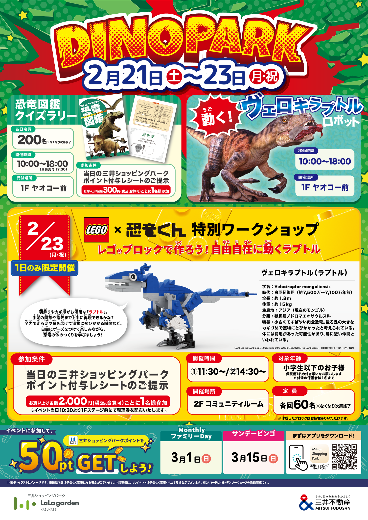 参加条件:当日の三井ショッピングパークポイント付与レシートのご提示(お買上金額2,000円(税込、合算可)ごとに1名参加)