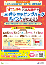 - 【毎月第1日曜日】★当日入会OK★ ヤオコーでのお買物で三井ショッピングパークポイントをためよう!