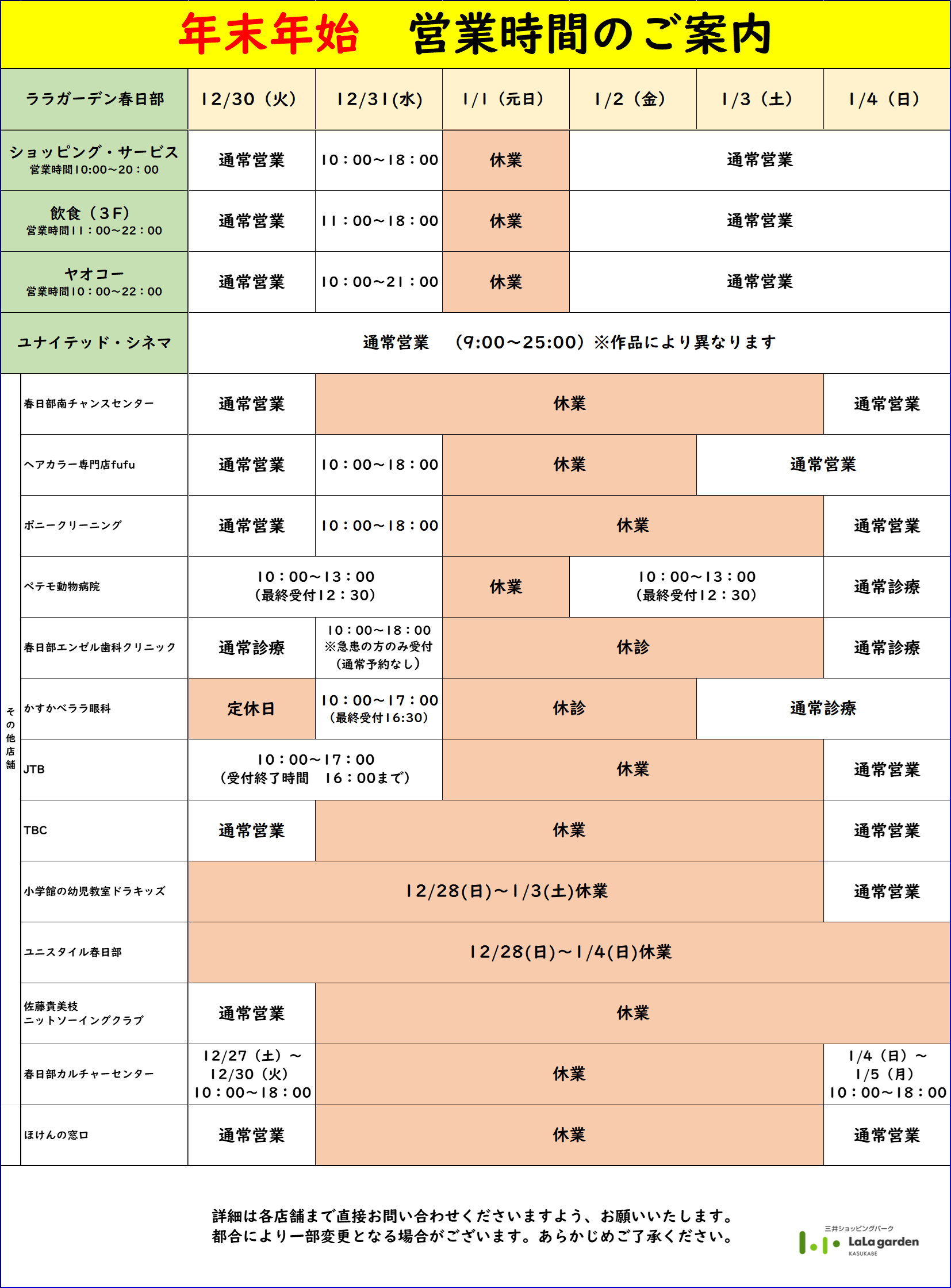 平素より、ララガーデン春日部をご利用いただきありがとうございます。