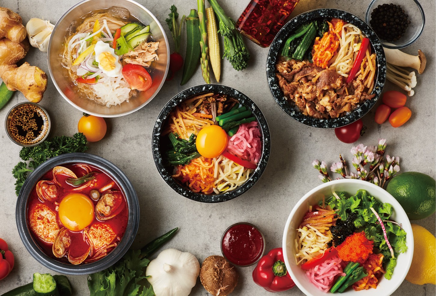 お肉たっぷり、野菜たっぷりのヘルシーな韓国料理をバラエティ豊かにご提供いたします。旬の食材や野菜をふんだんに使った料理を自由に楽しく食べてもらい、たくさんの笑顔がみたい。これが韓美膳の「想い」です。