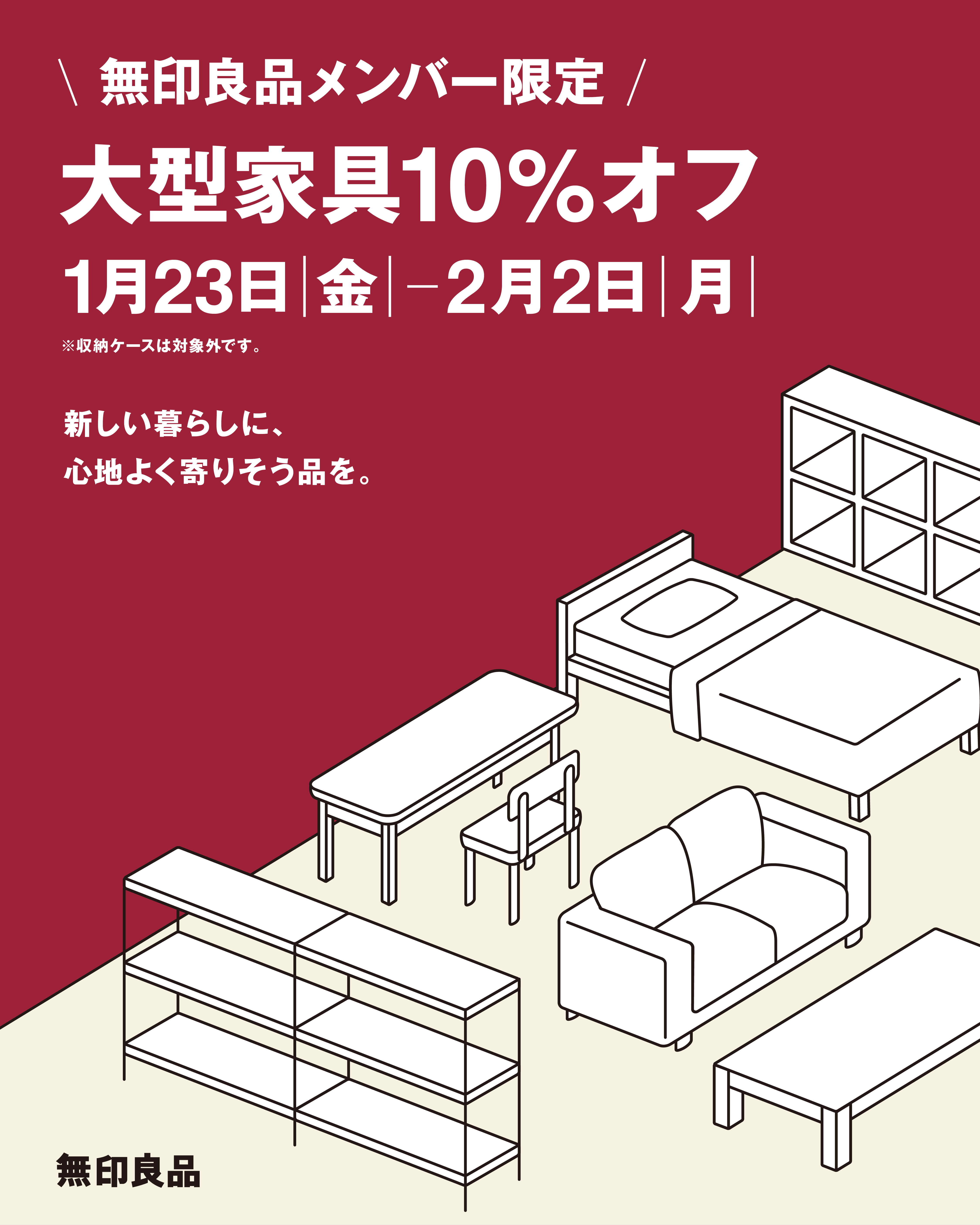 - 【無印良品】大型家具10%オフ(1/23~2/2)