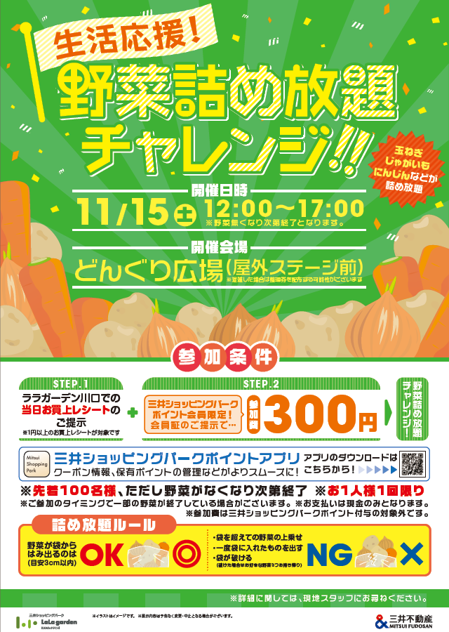 ★毎月15日開催★生活応援!野菜詰め放題チャレンジ!!
