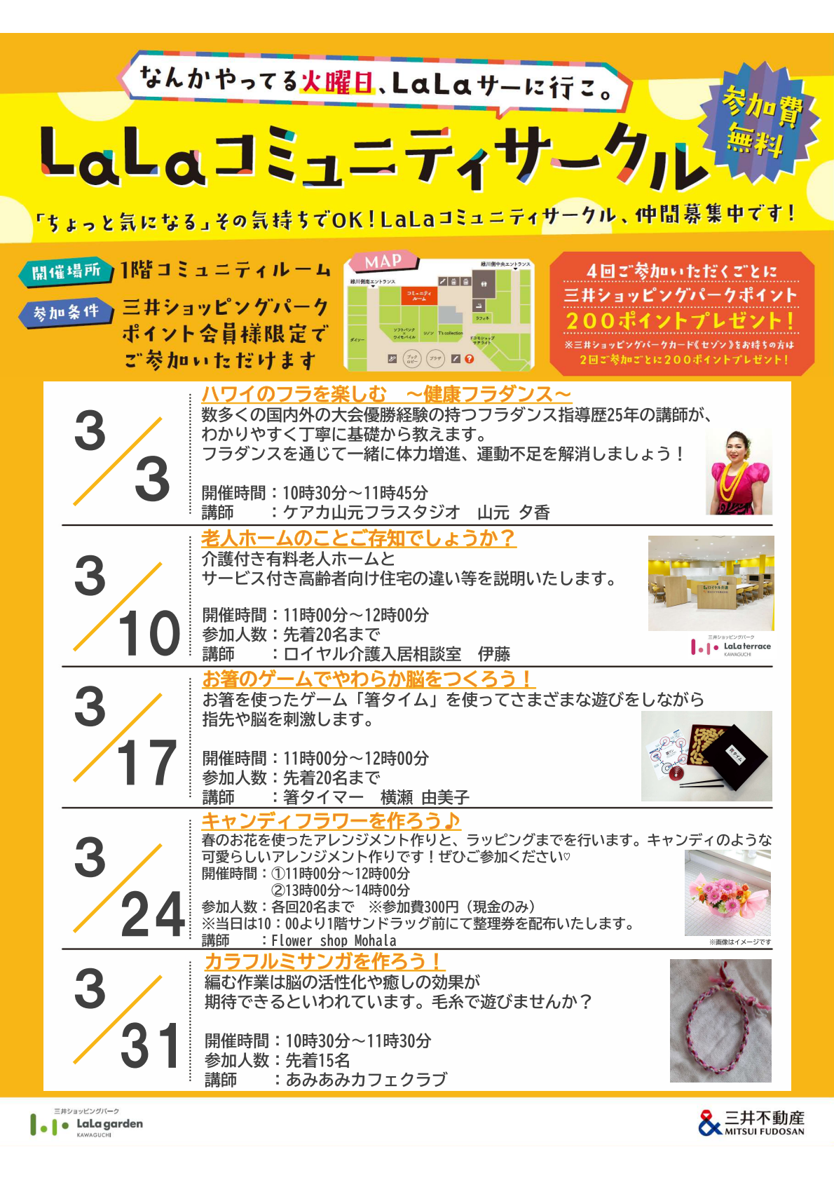 ※三井ショッピングパークカード≪セゾン≫をお持ちの方は2回参加ごとに200ポイントプレゼント!