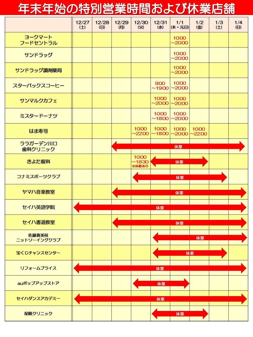 年末年始特殊営業時間および休業店舗については、こちらよりご確認ください。