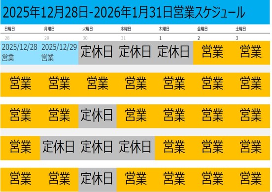 年末年始の営業のご案内