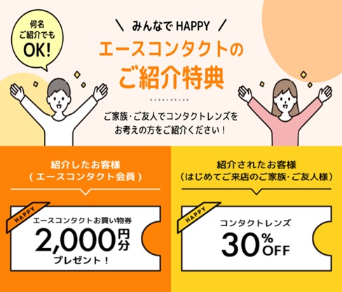 ご紹介していただいた方には、エースコンタクトお買物券を2,000円分プレゼント♪