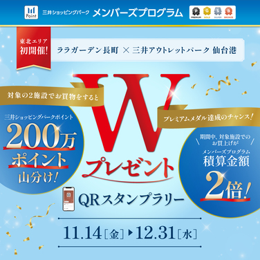ララガーデン長町×三井アウトレットパーク 仙台港「WプレゼントQRスタンプラリー」