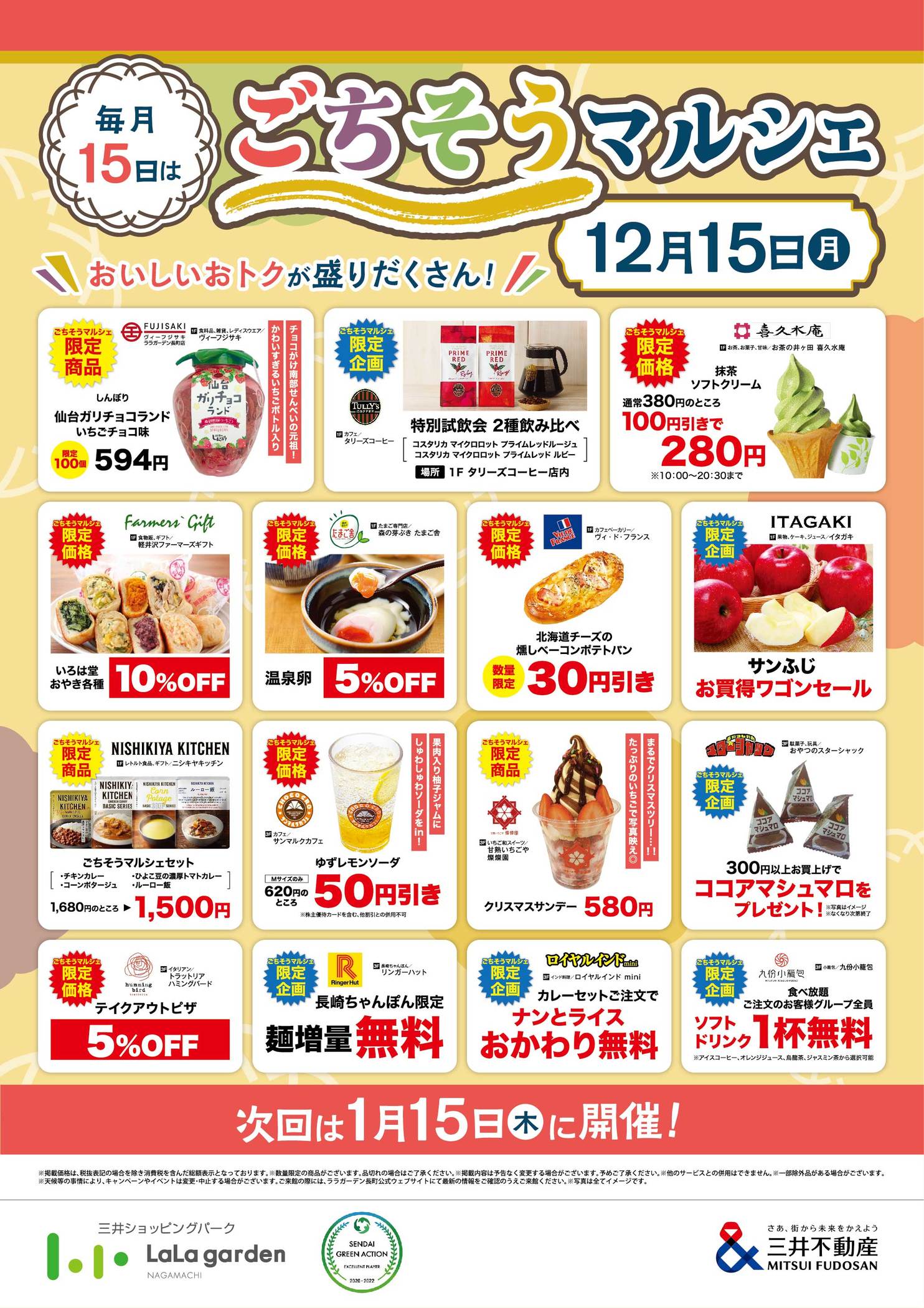 食品店舗で毎月15日に開催!