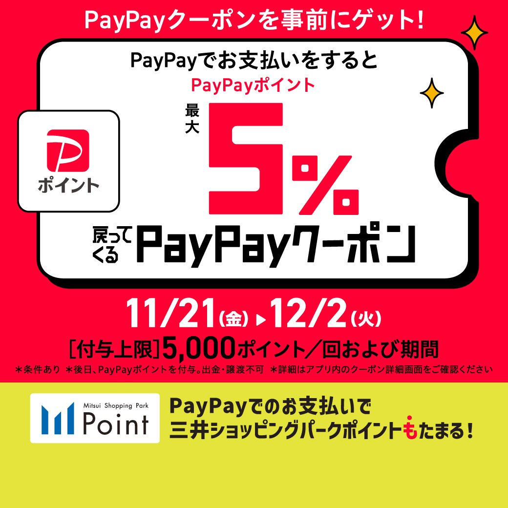 また、PayPayでのお支払いで三井ショッピングパークポイントもたまります!