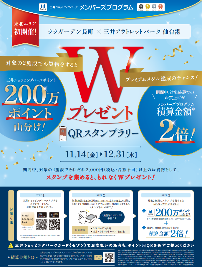 - ララガーデン長町×三井アウトレットパーク 仙台港「WプレゼントQRスタンプラリー」