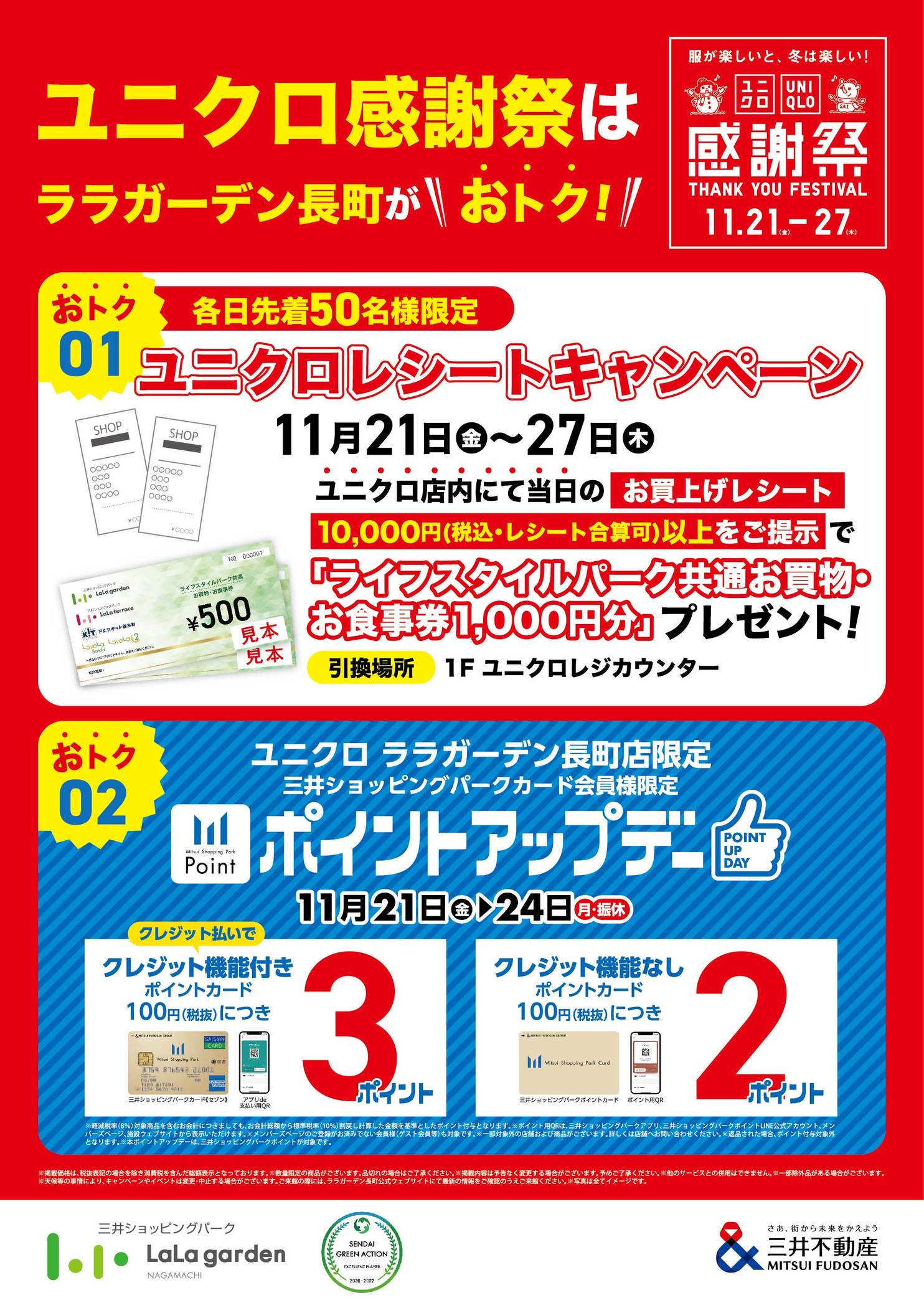- 「ユニクロ感謝祭」はララガーデン長町がおトク!