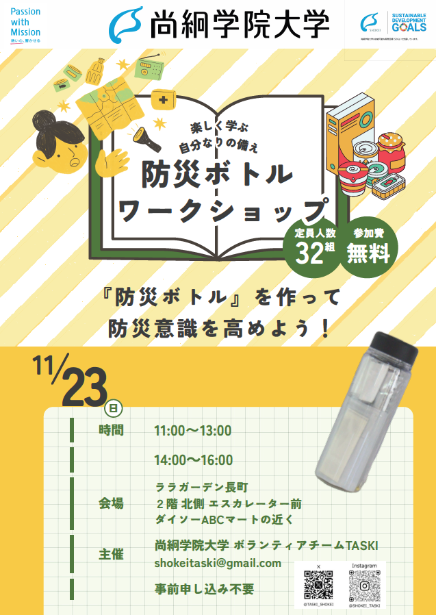 尚絅学院大学ボランティアチーム「TASKI」主催の防災イベントを初開催!