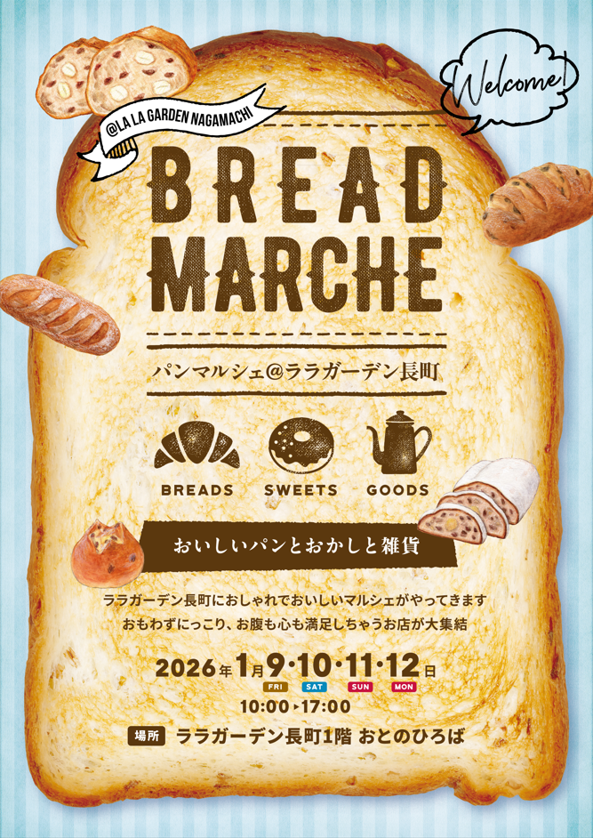 2026/1/9(金)から1/12(月/祝)までの期間限定で、「ブレッドマルシェ」を開催いたします!