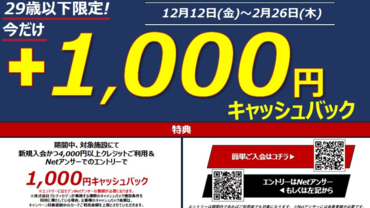 29歳以下限定!今だけ+1,000円分キャッシュバックキャンペーン
