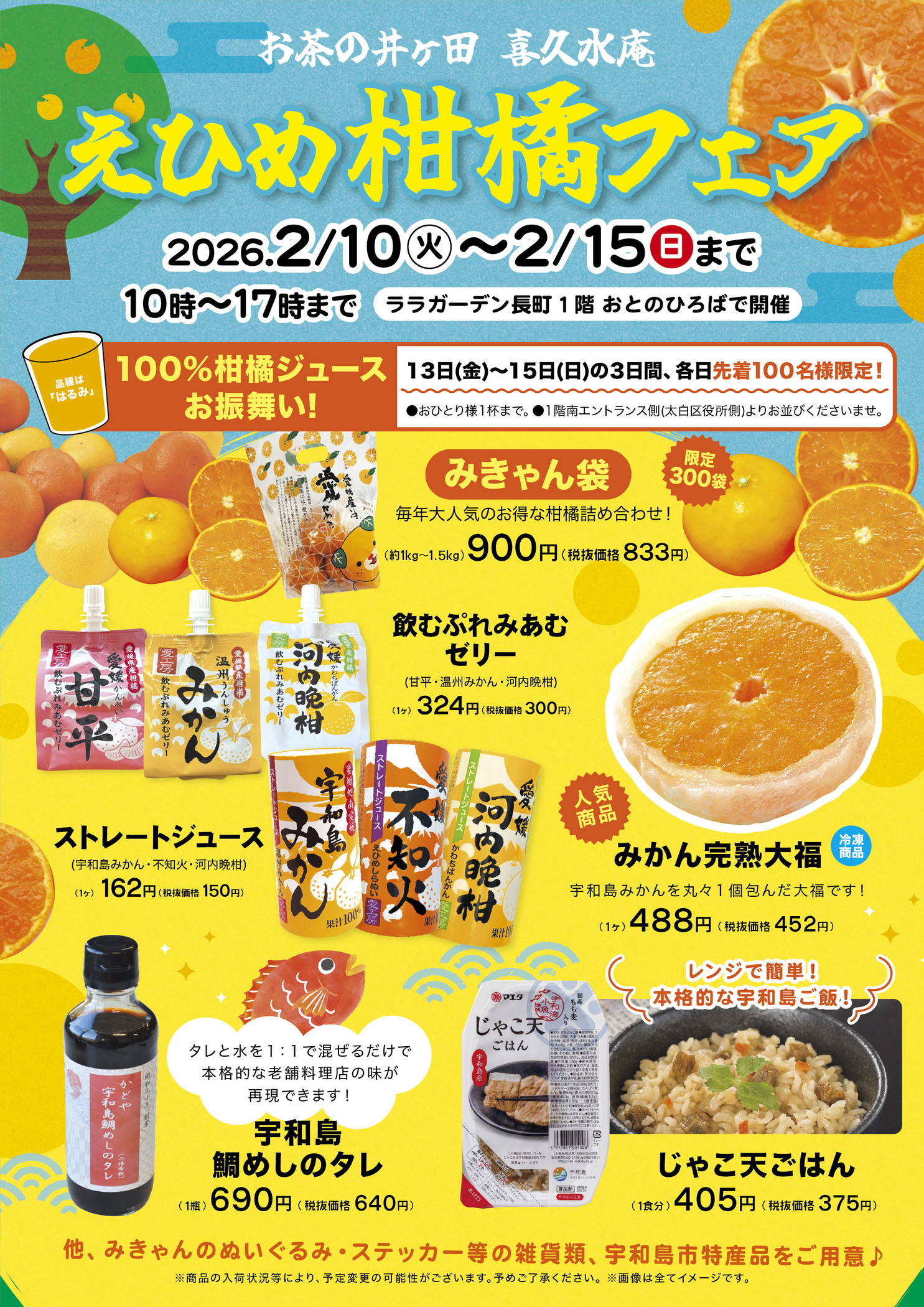 さらに!2/13(金)~15(日)の3日間は、各日先着100名限定で「100%柑橘ジュース」のお振舞いも!
