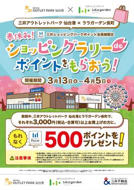 三井アウトレットパーク 仙台港×ララガーデン長町「春休み!ショッピングラリー」