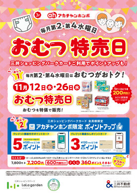 ☆ララガーデン長町店限定企画☆ 毎月第2・第4水曜日は「おむつ特売日」!