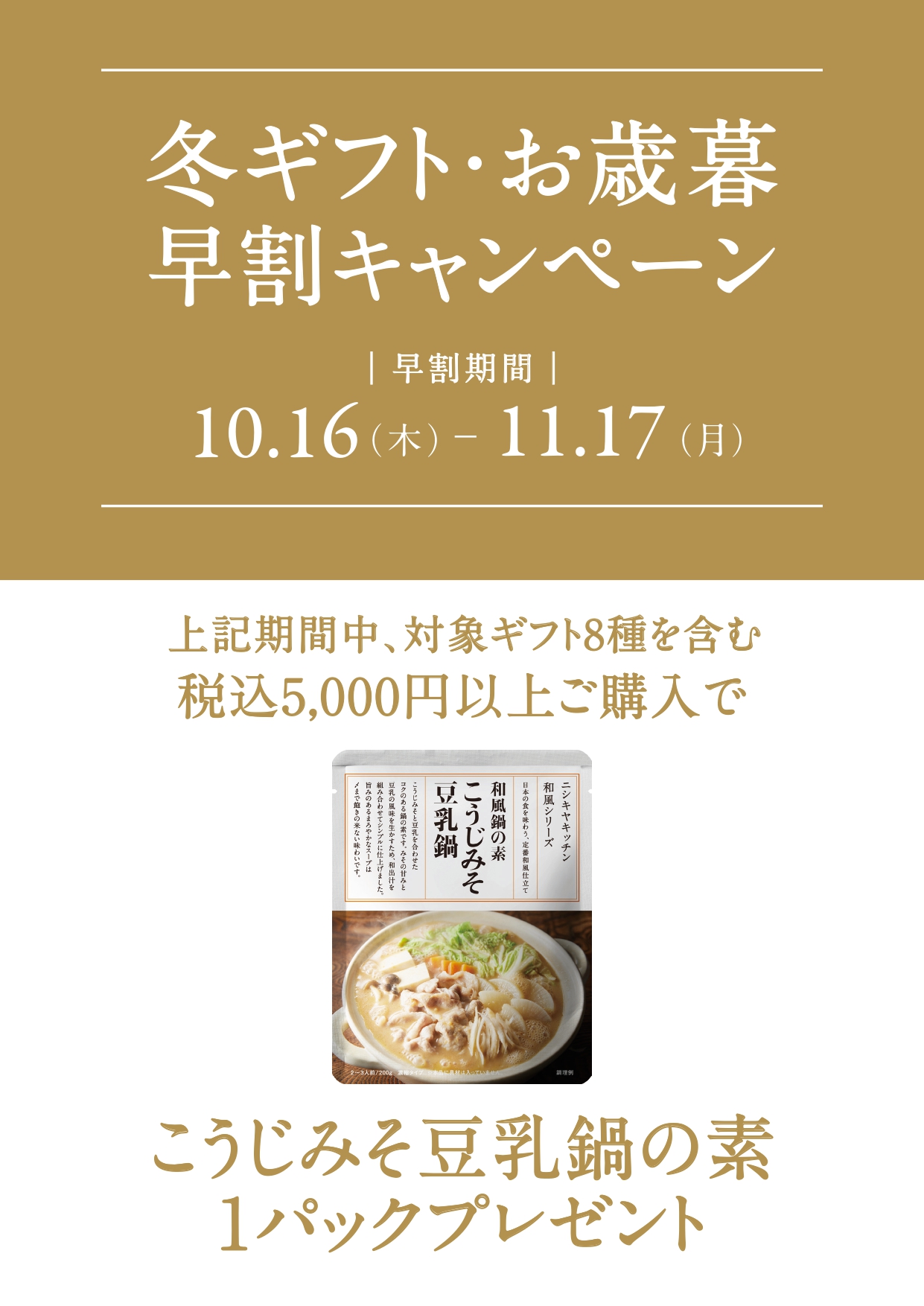 『こうじみそ豆乳鍋の素』を1パックプレゼント!
