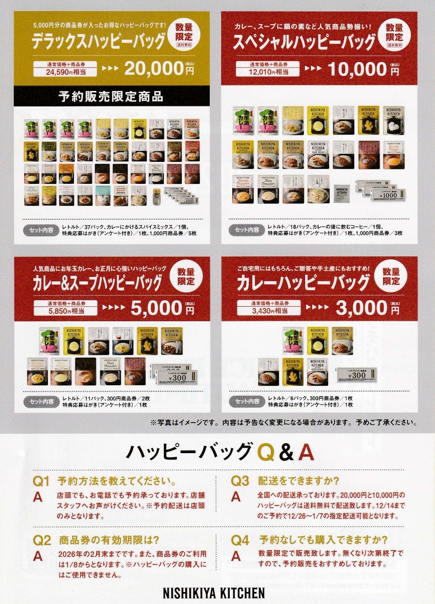 カレーハッピーバッグ(3千円)の4パターンで販売いたします。
