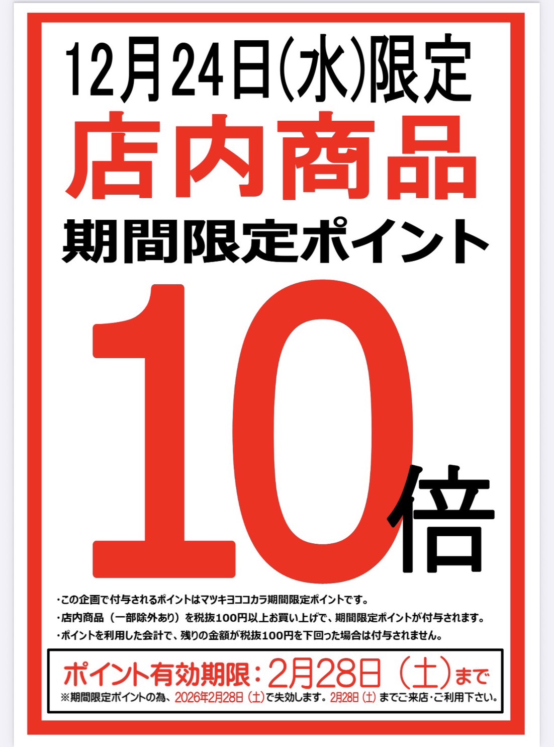 - 店内全品マツキヨポイント10倍セールのお知らせ