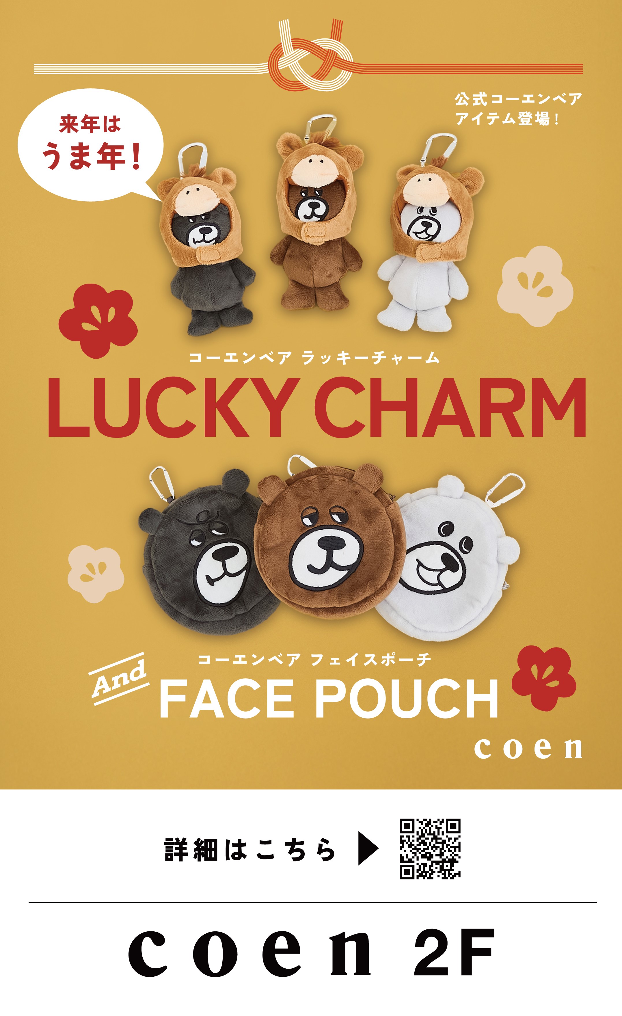 コーエンでは年始よりお正月限定アイテムとして、コーエンベアのチャームとフェイスポーチを販売いたします!