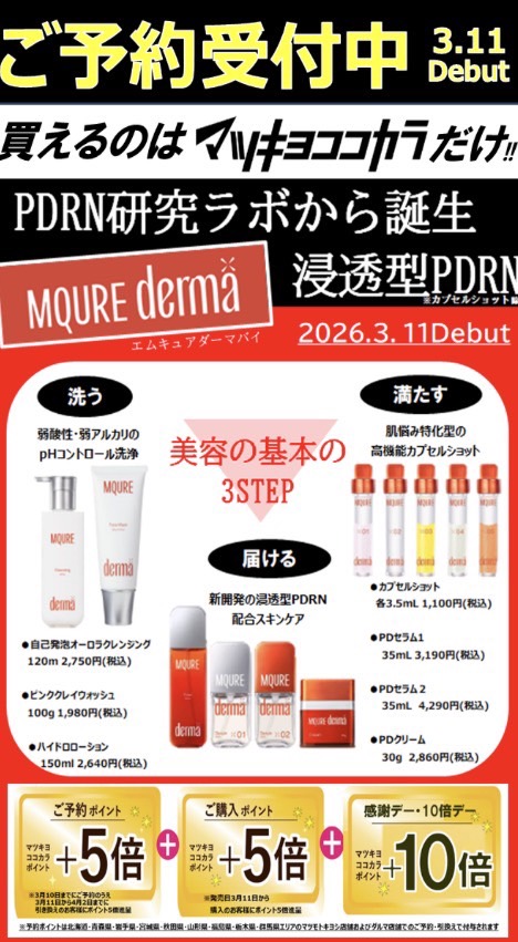 そして3/15(日)は、マツキヨ限定エムキュアダーマバイシリーズの店頭体感イベントを行う予定です!!