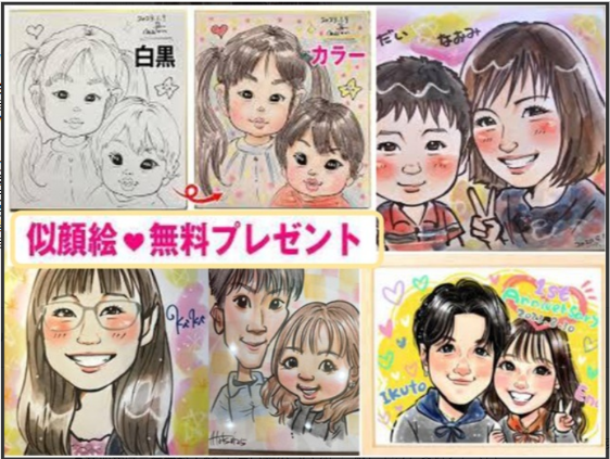 笑顔あふれる素敵な似顔絵、私たちが心を込めてプレゼントします!
