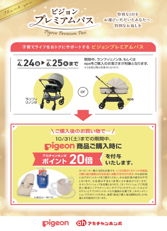 アカチャンホンポにて試乗できます うれしいピジョンプレミアムパス対象品