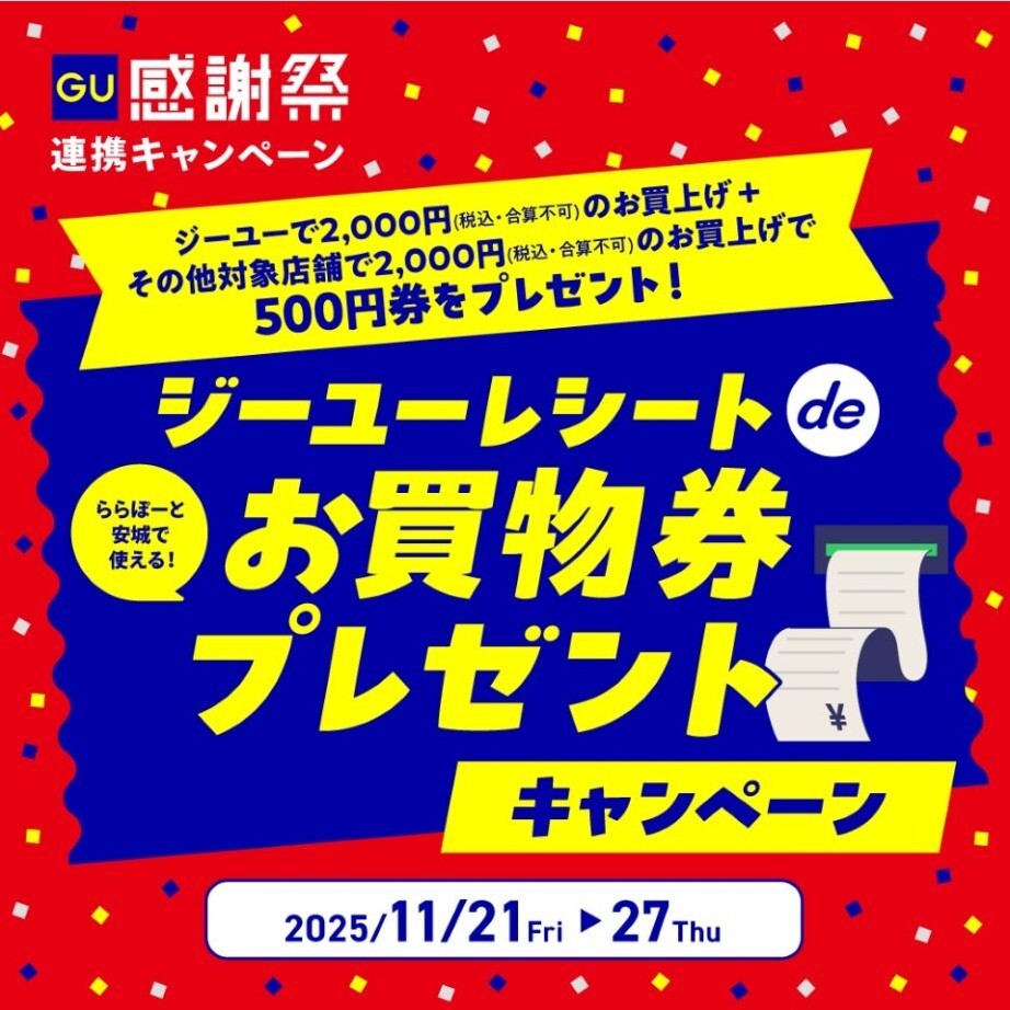 11/21(金)~11/27(木)の期間中、「1F ジーユー」と「ららぽーと安城内ほか店舗」で