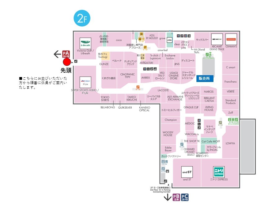 ■オープン前待機列:A立体駐車場2階連絡通路口