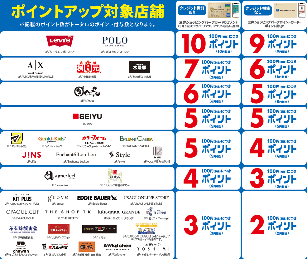 ※本キャンペーンは一部対象店舗限定です。全館でのポイントアップ開催ではございません。