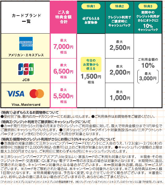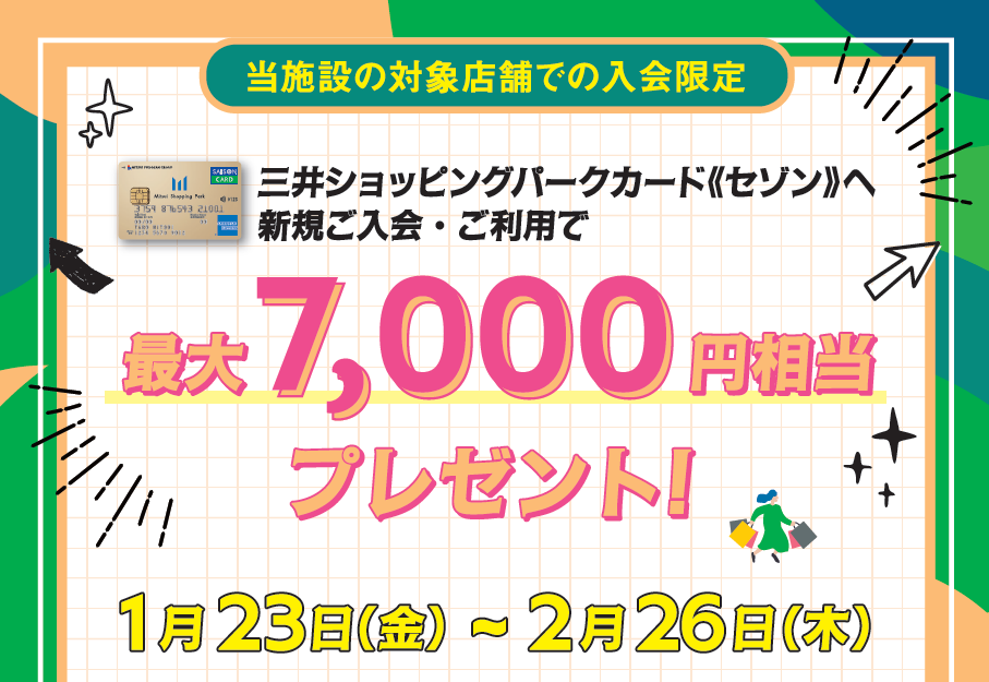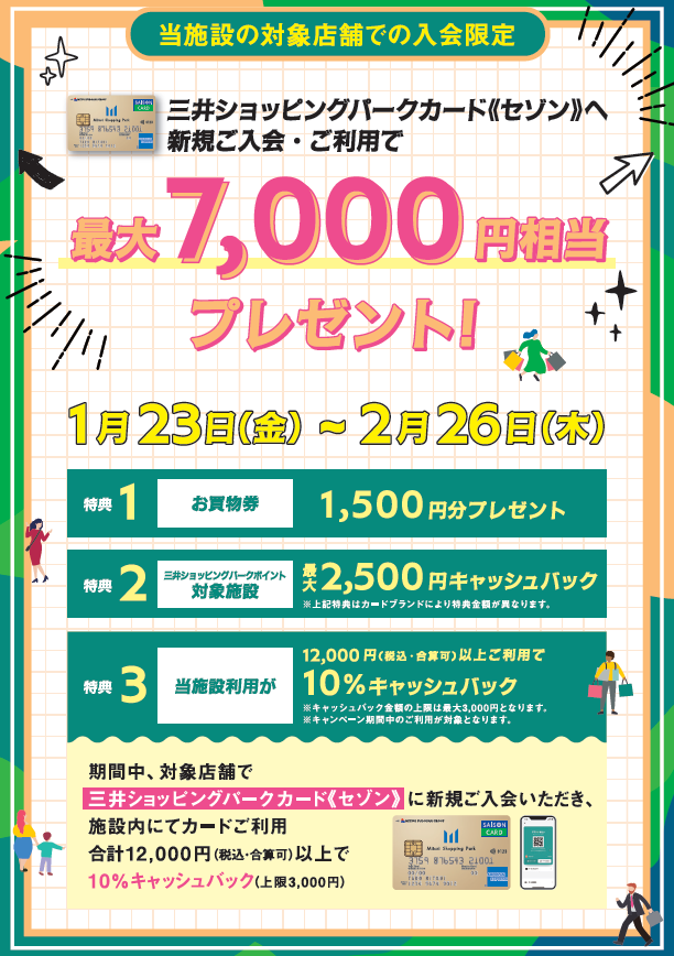 - 三井ショッピングパークカード《セゾン》 対象店舗紹介限定 新規ご入会最大7,000円キャンペーン開催中!