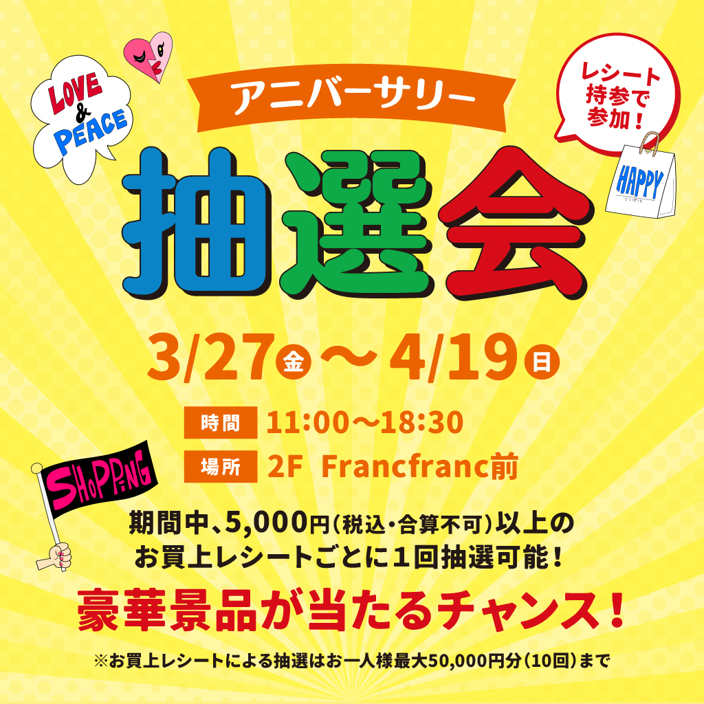 - ららぽーと安城1周年記念!アニバーサリー抽選会!