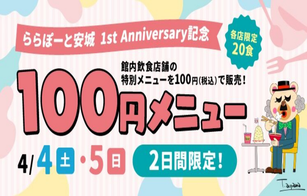 1周年アニバーサリー記念 100円メニュー特集♪